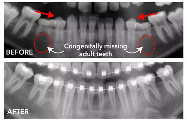 可能存在恒牙的先天缺失。这种情况需要到医院借助X线片来判断,如果确定先天缺失,正畸医生会根据周围牙齿的排列情况选择合适时机、恰当方法进行治疗。